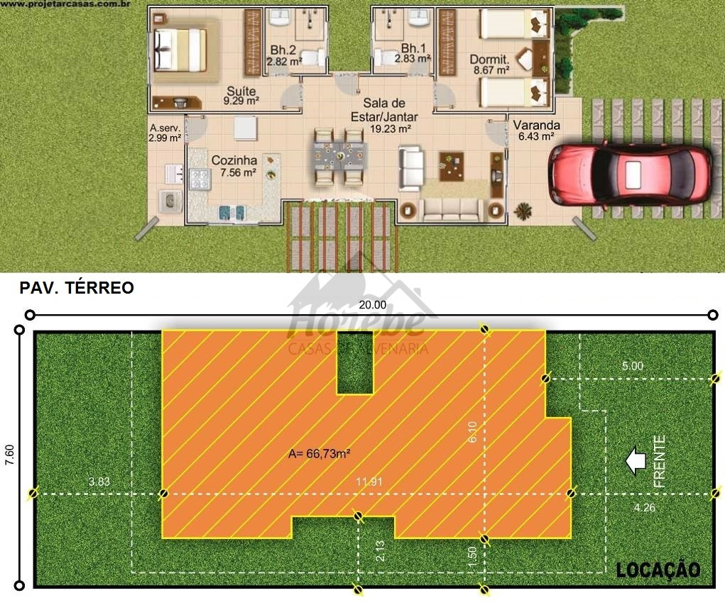 Casa de alvenaria estrutural com 66,73 m2